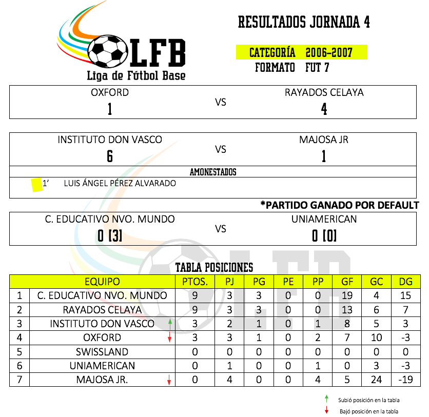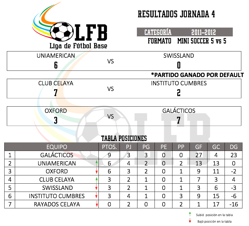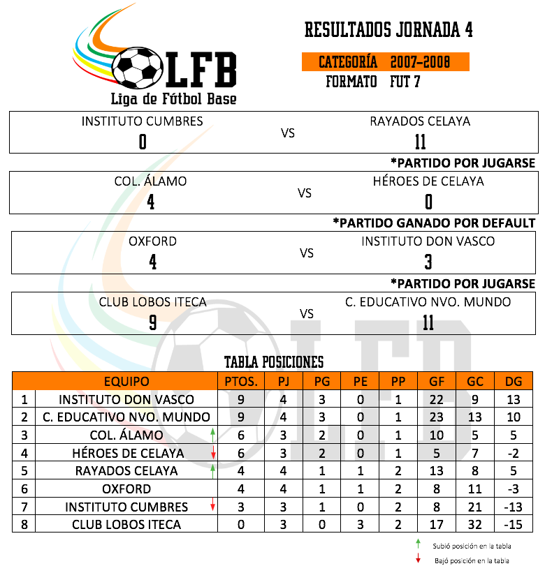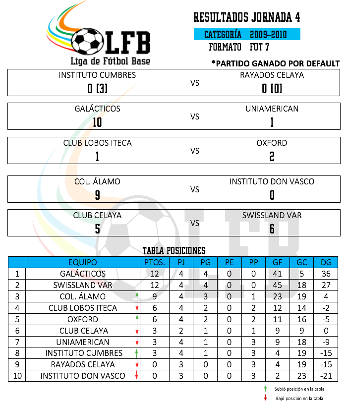 El día de ayer concluyeron los partidos correspondientes a la jornada 4, por lo que ya tenemos los resultados y estadísticas correspondientes, se tuvieron muchos cambios de posiciones en las tablas por categoría y se vivieron partidos muy emocionantes.